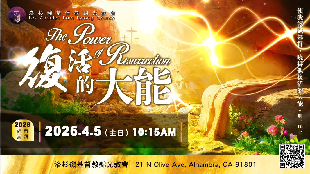 主日崇拜:週日10:15 AM - 12:15 PM